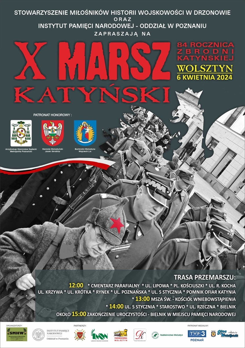 W dniu 6 kwietnia 2024 roku ulicami Wolsztyna przemaszeruje jubileuszowy  X Marsz Katyński”. Organizatorami Marszu są: Stowarzyszenie Miłośników Historii Wojskowości i Instytut Pamięci Narodowej Oddział w Poznaniu.